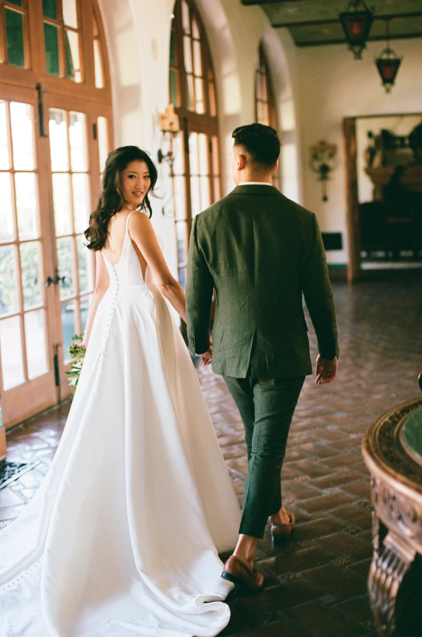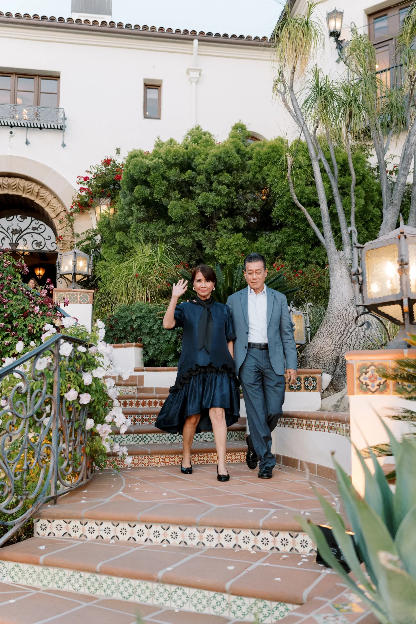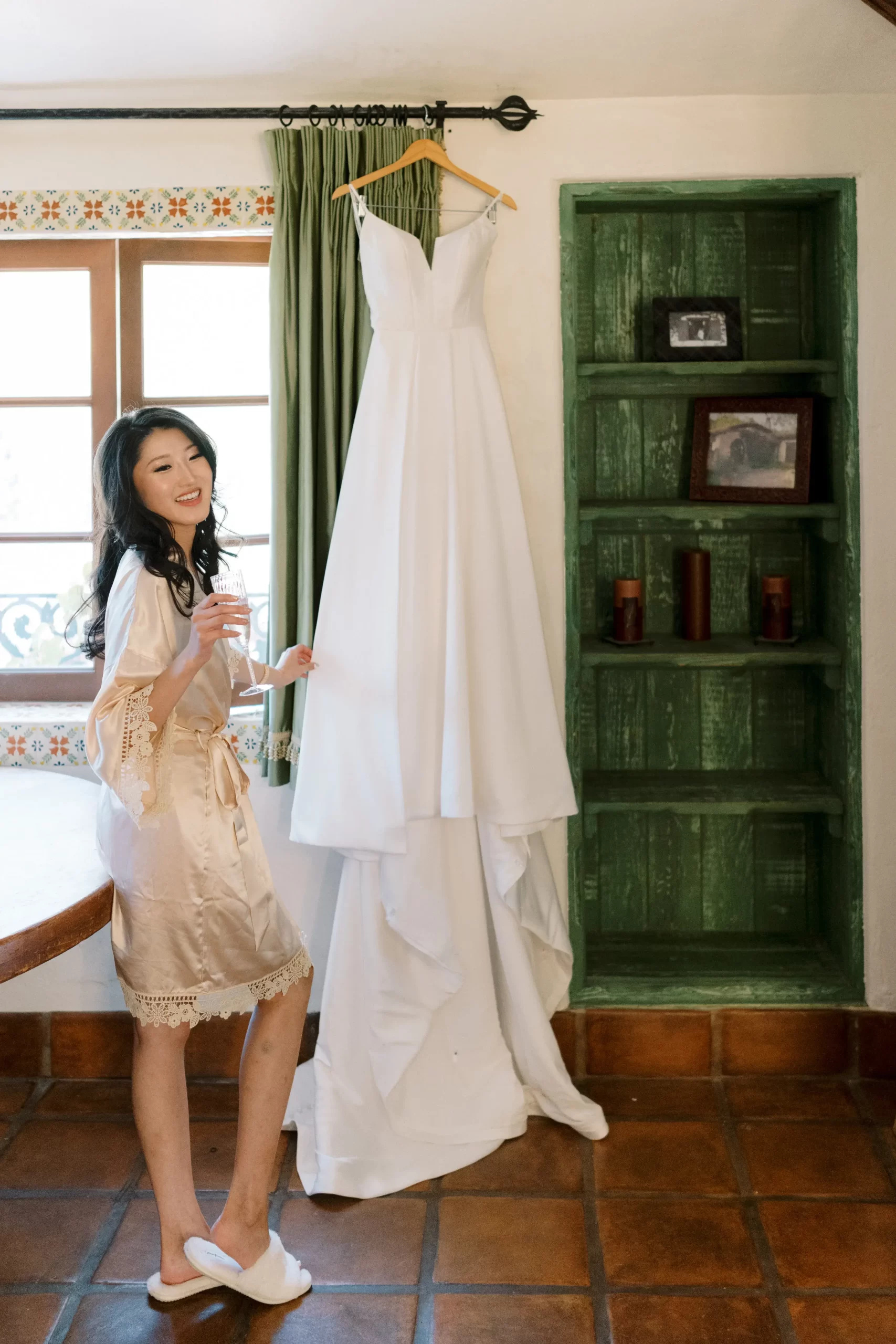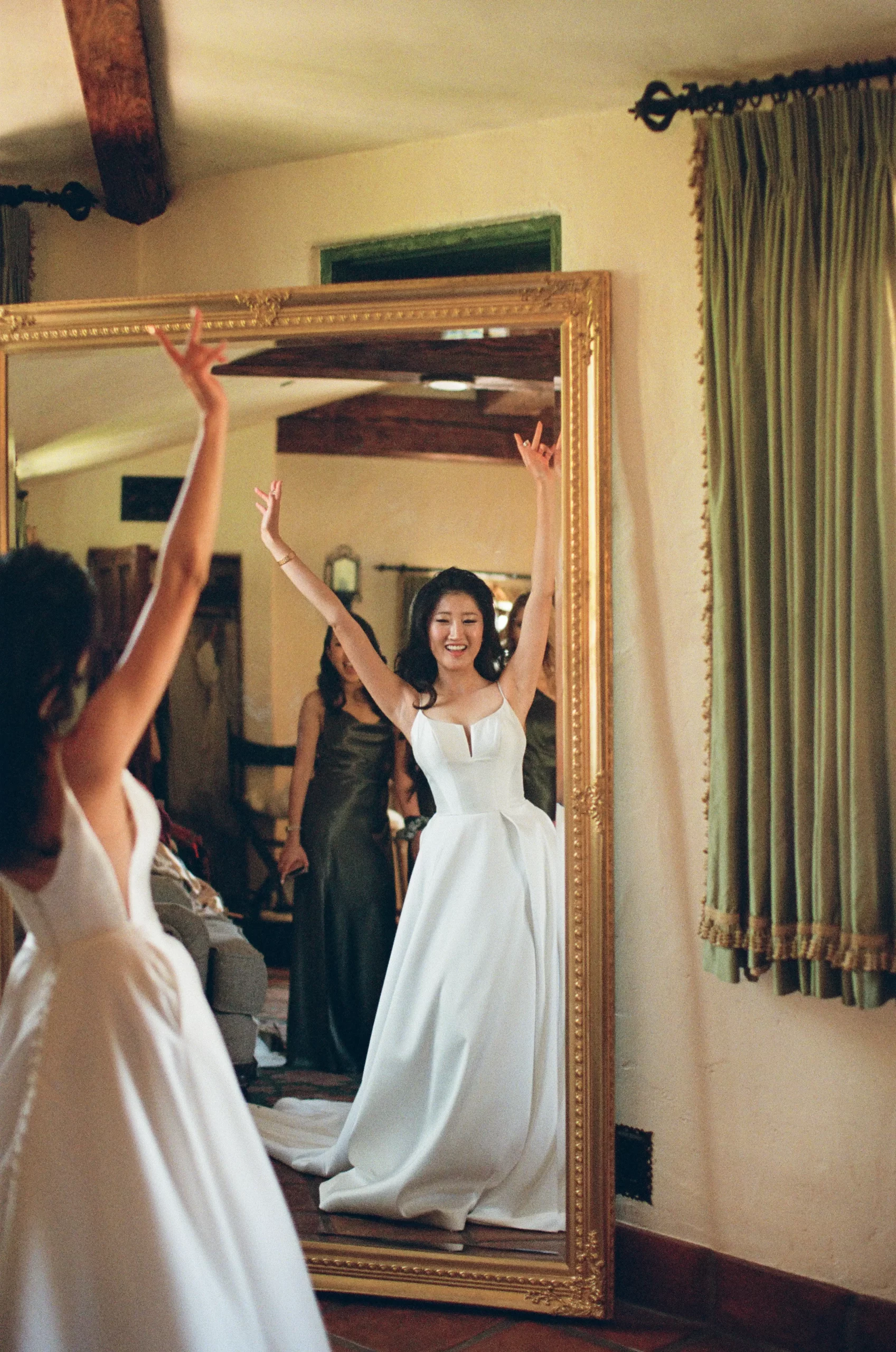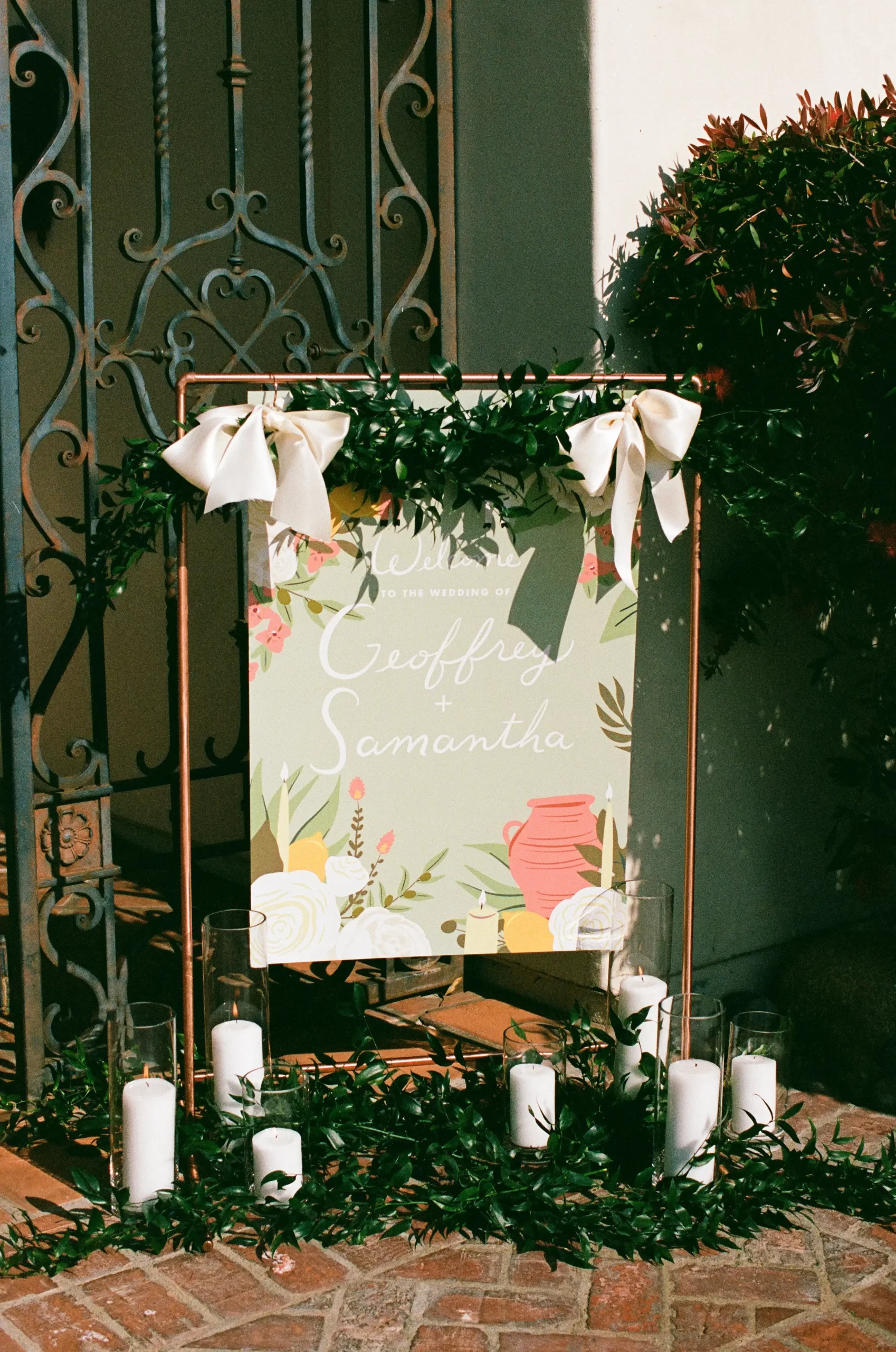 We wanted our wedding theme to seamlessly blend with the venue’s overall vibe. Our first impression was ‘Old Hollywood Glamour’. (It’s no wonder that Damien Chazelle movie Babylon, starring Brad Pitt and Margot Robbie was filmed here) This inspired our choice of satin-finished dresses with clean lines for both the bride and bridesmaids. To lighten things up, we incorporated whimsical Mediterranean elements into our floral arrangements and stationery.
