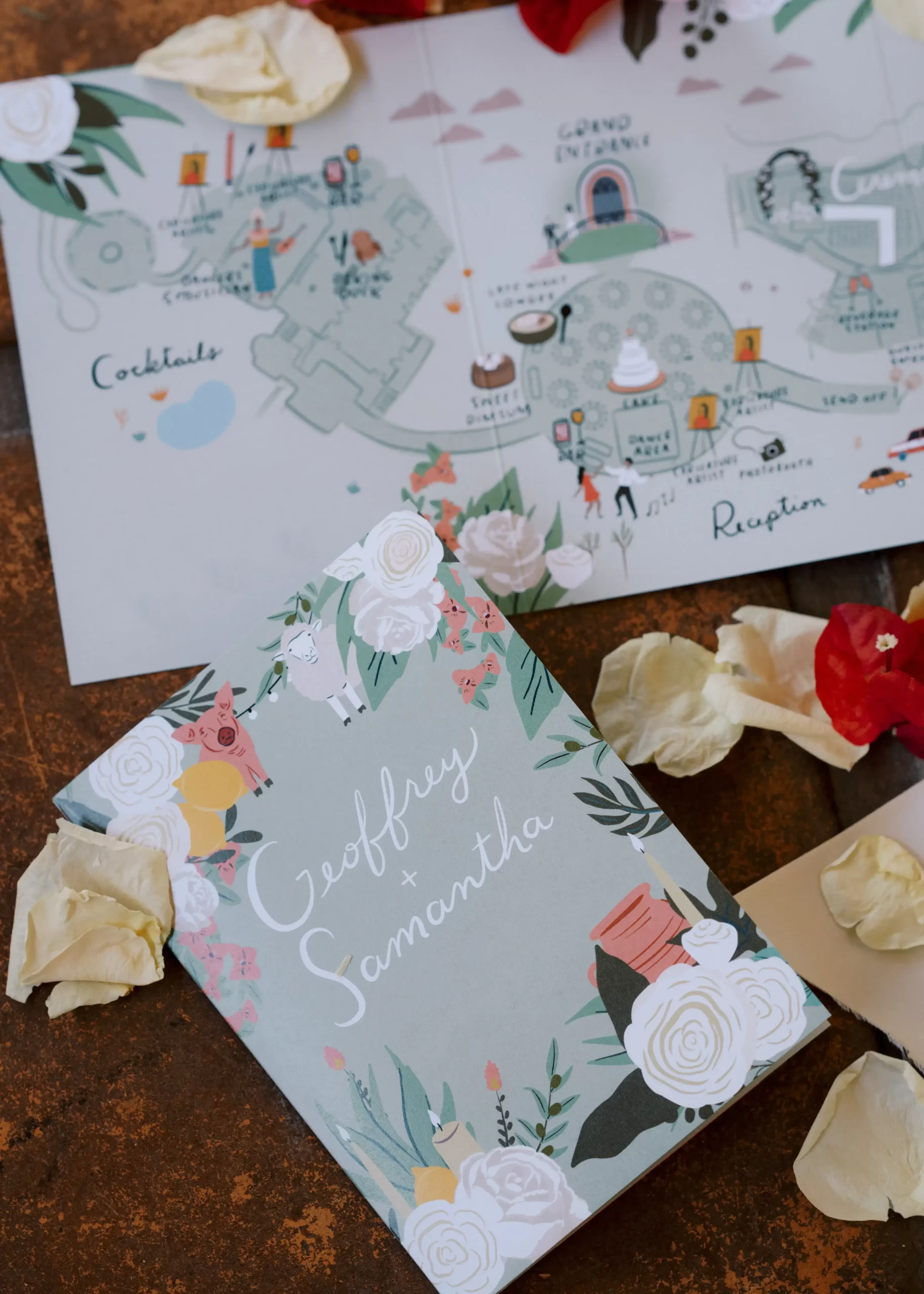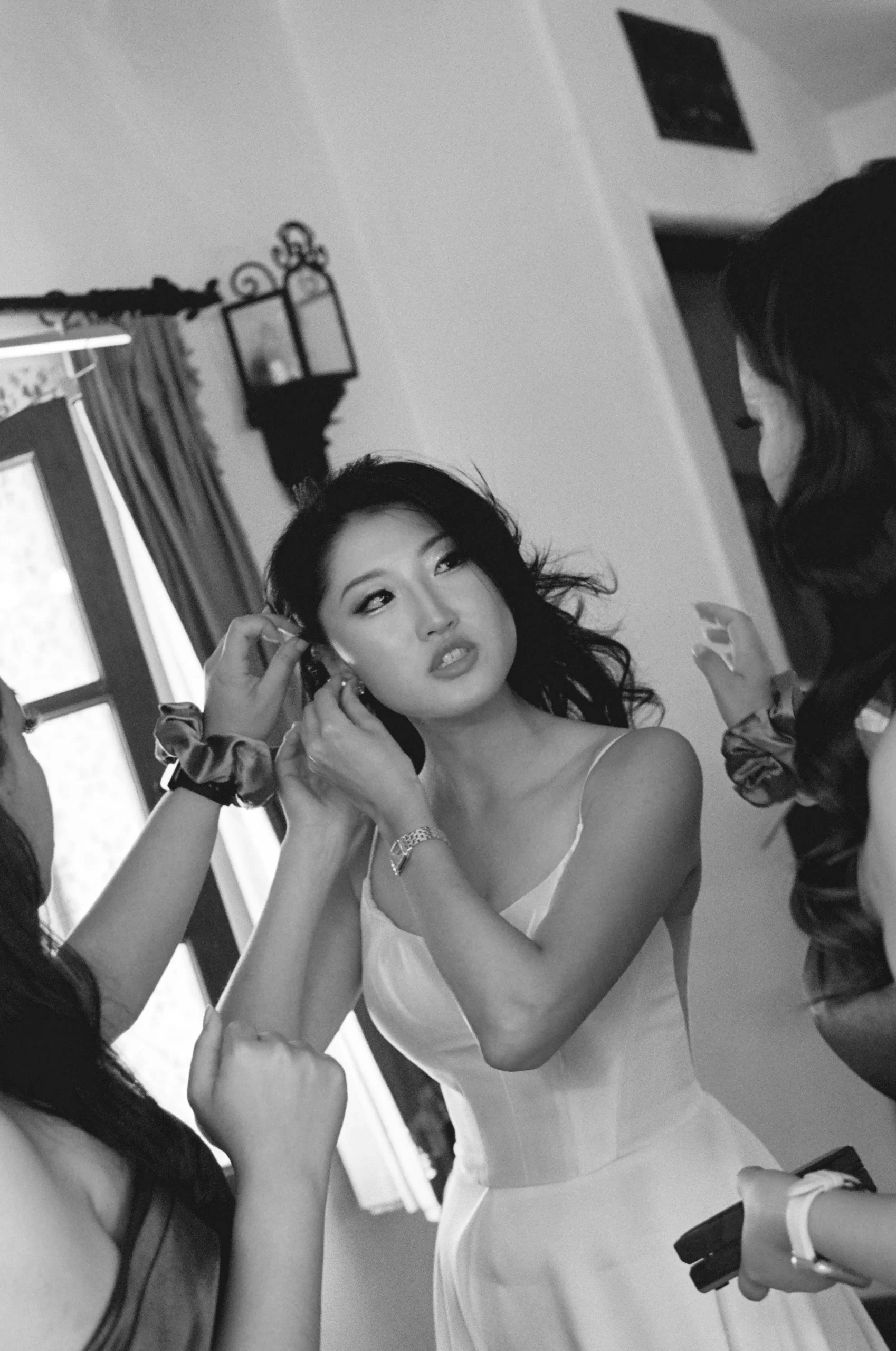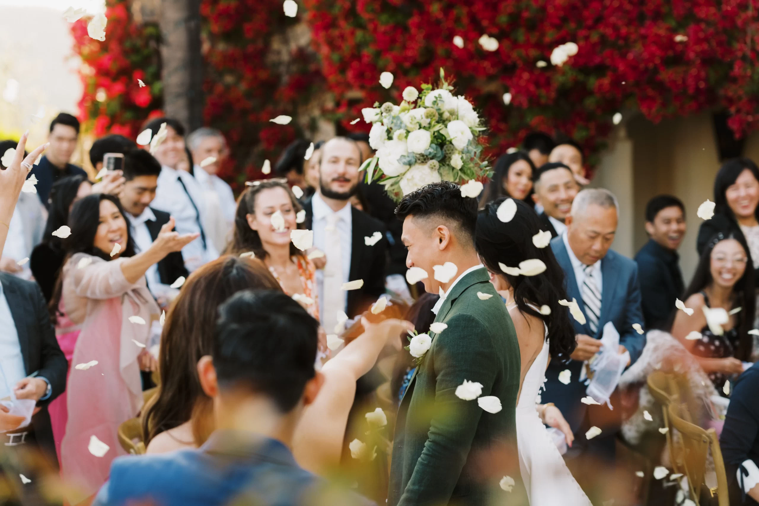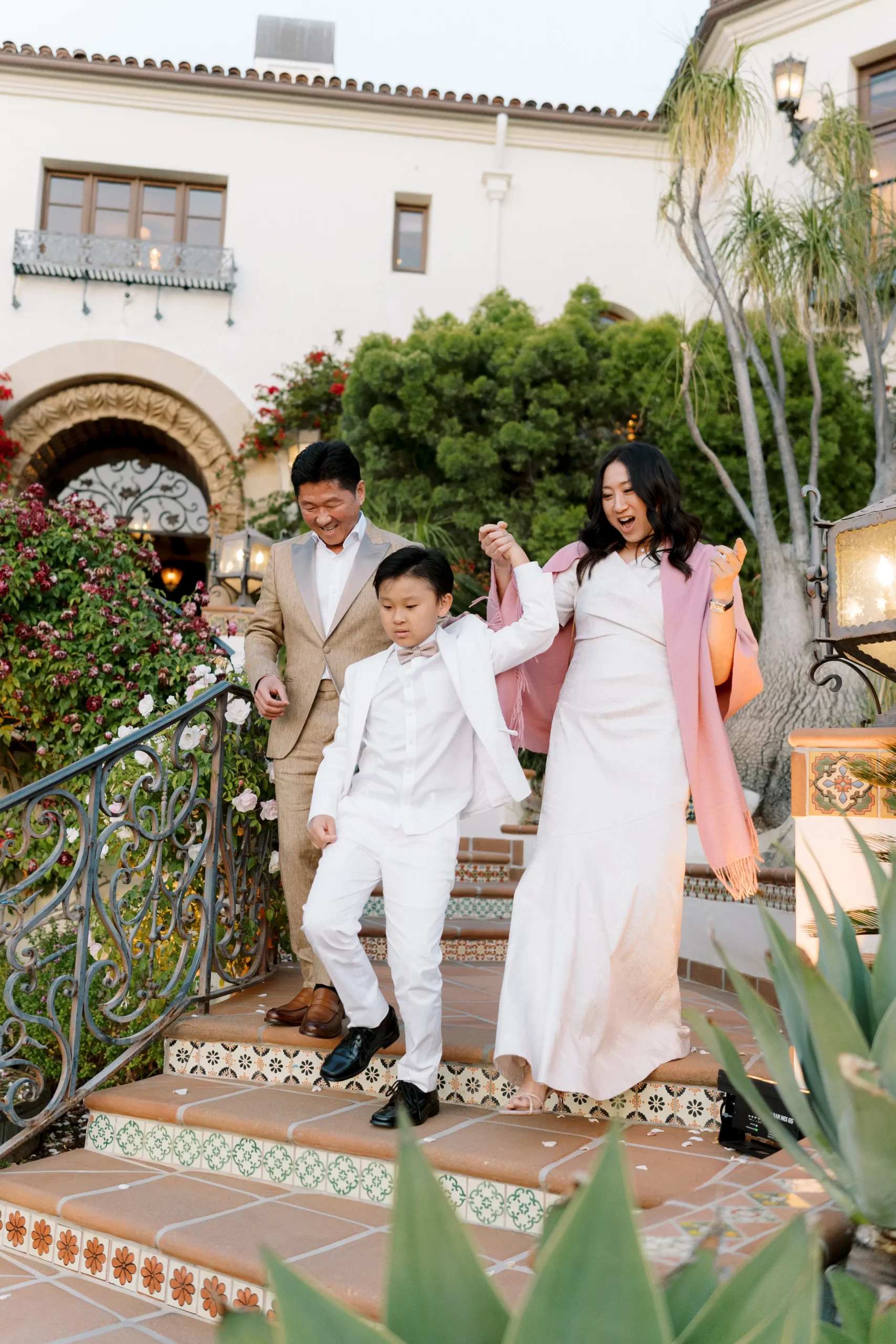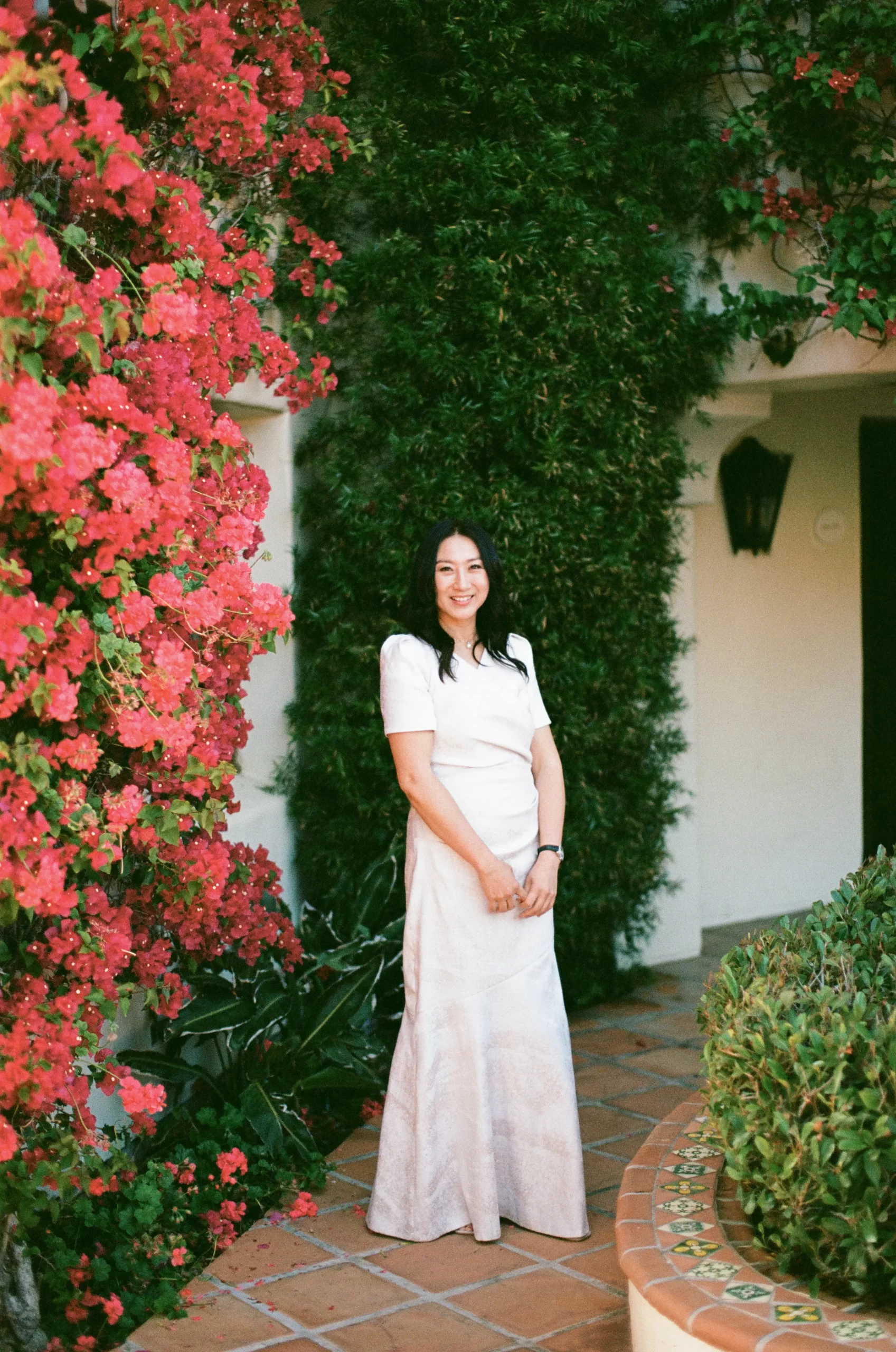 We wanted our wedding theme to seamlessly blend with the venue’s overall vibe. Our first impression was ‘Old Hollywood Glamour’. (It’s no wonder that Damien Chazelle movie Babylon, starring Brad Pitt and Margot Robbie was filmed here) This inspired our choice of satin-finished dresses with clean lines for both the bride and bridesmaids. To lighten things up, we incorporated whimsical Mediterranean elements into our floral arrangements and stationery.