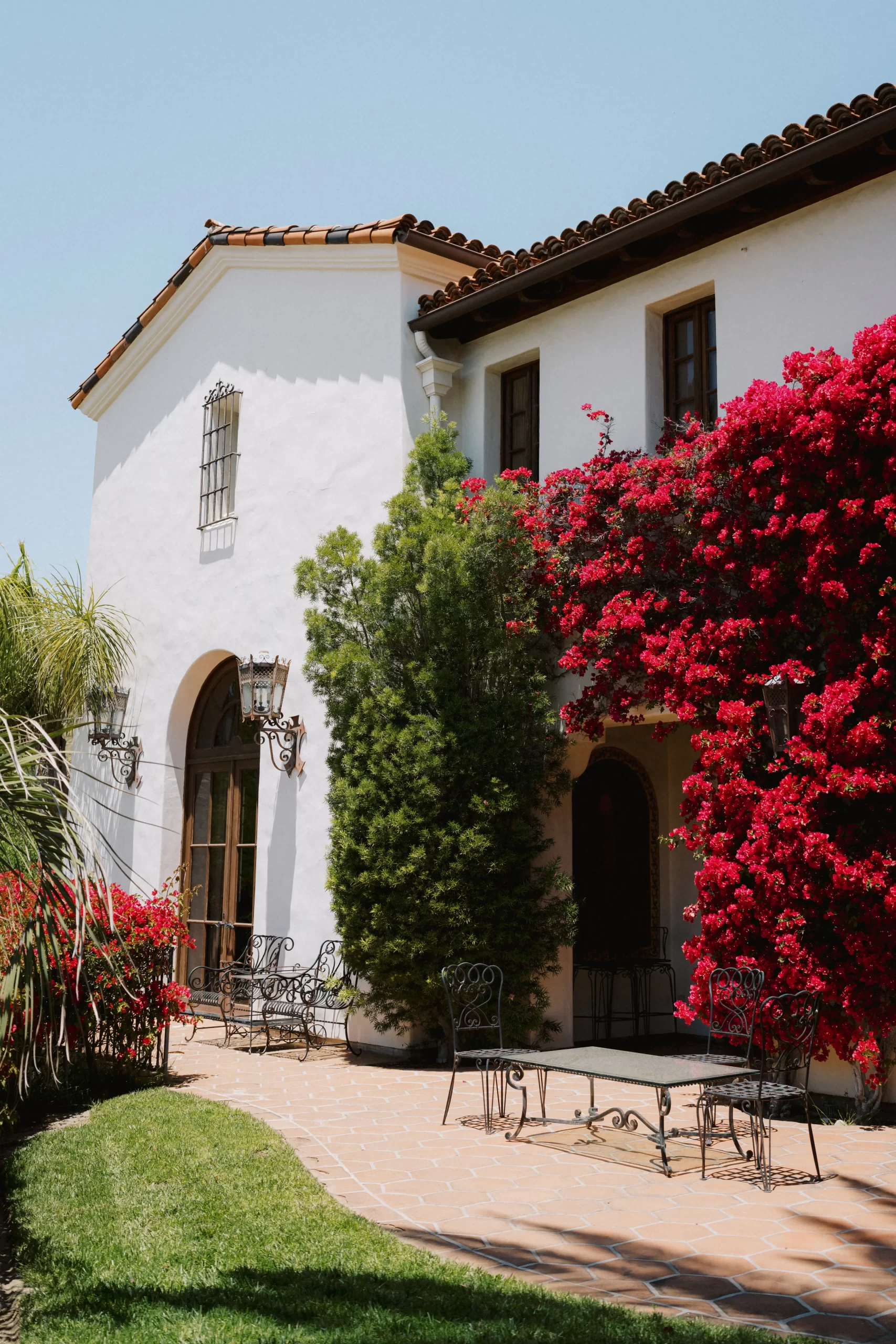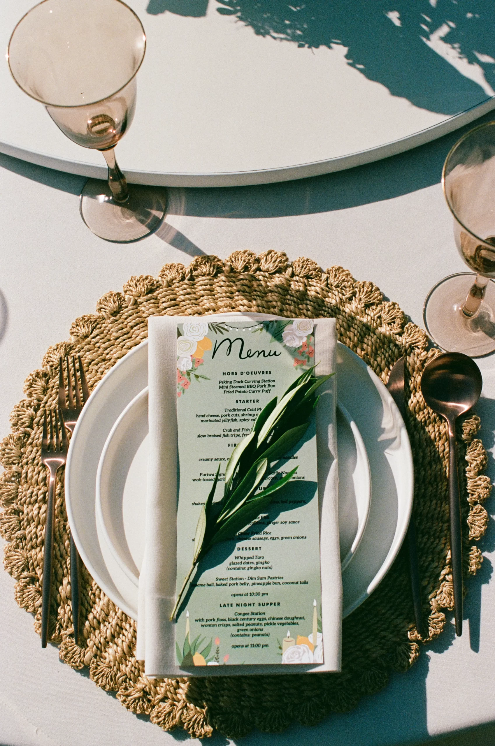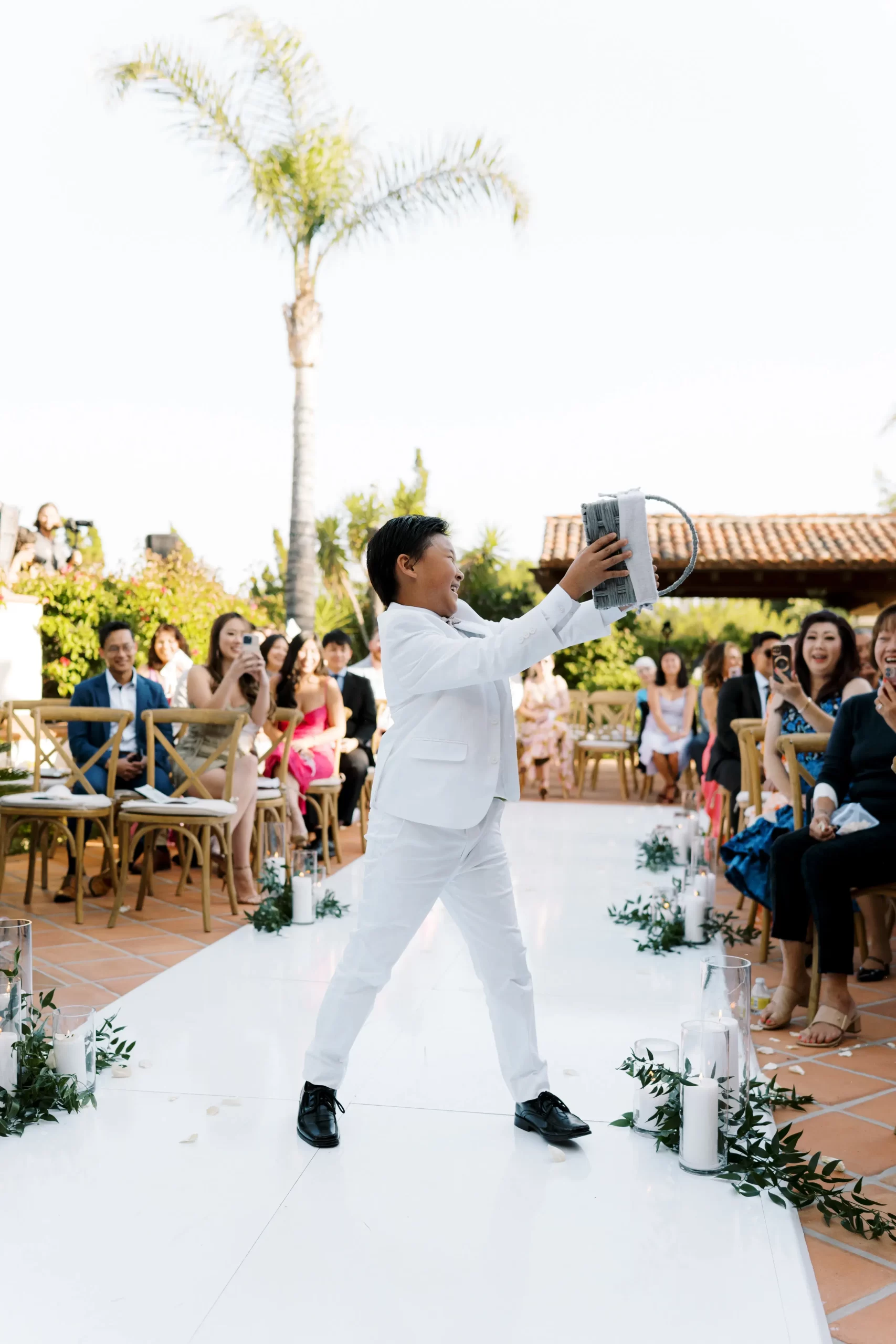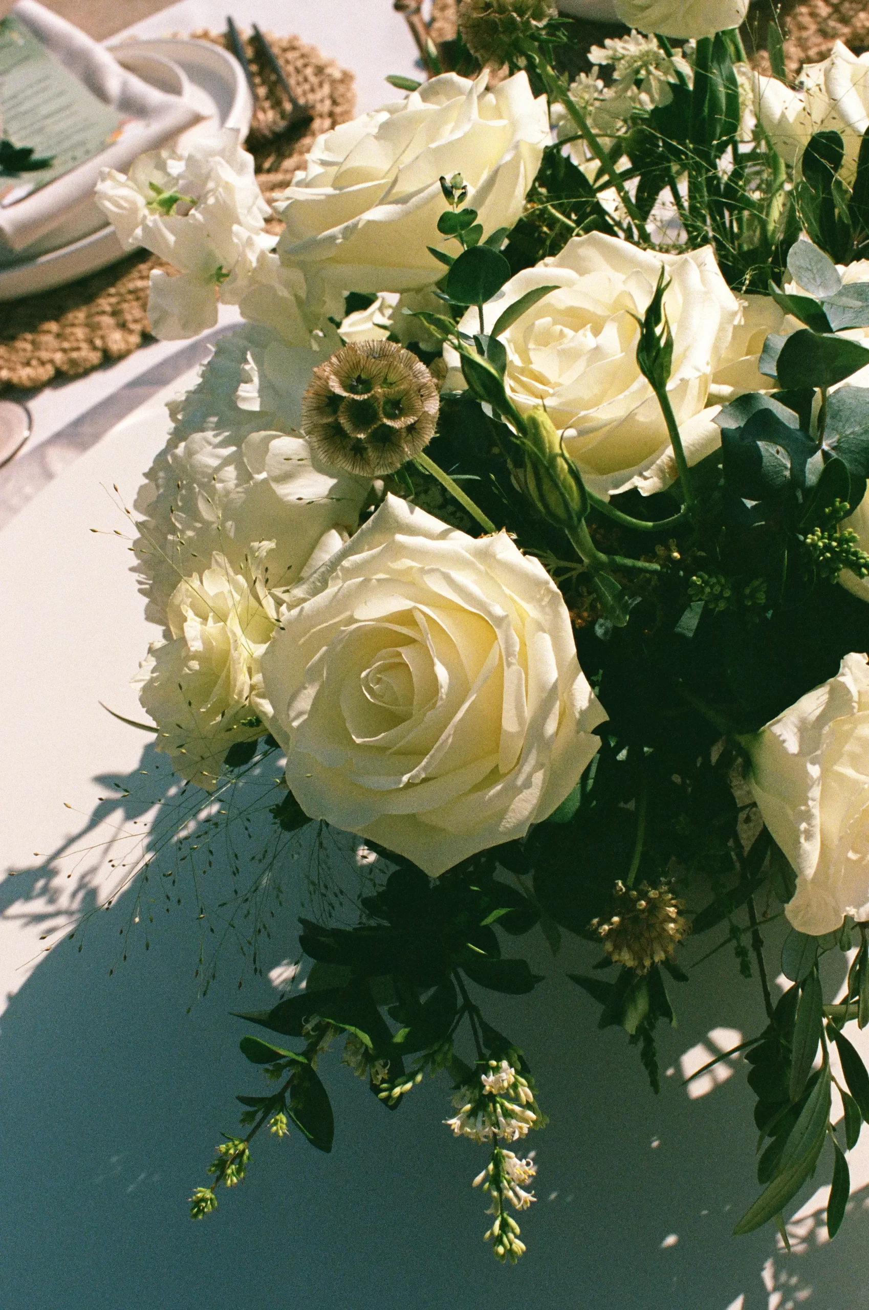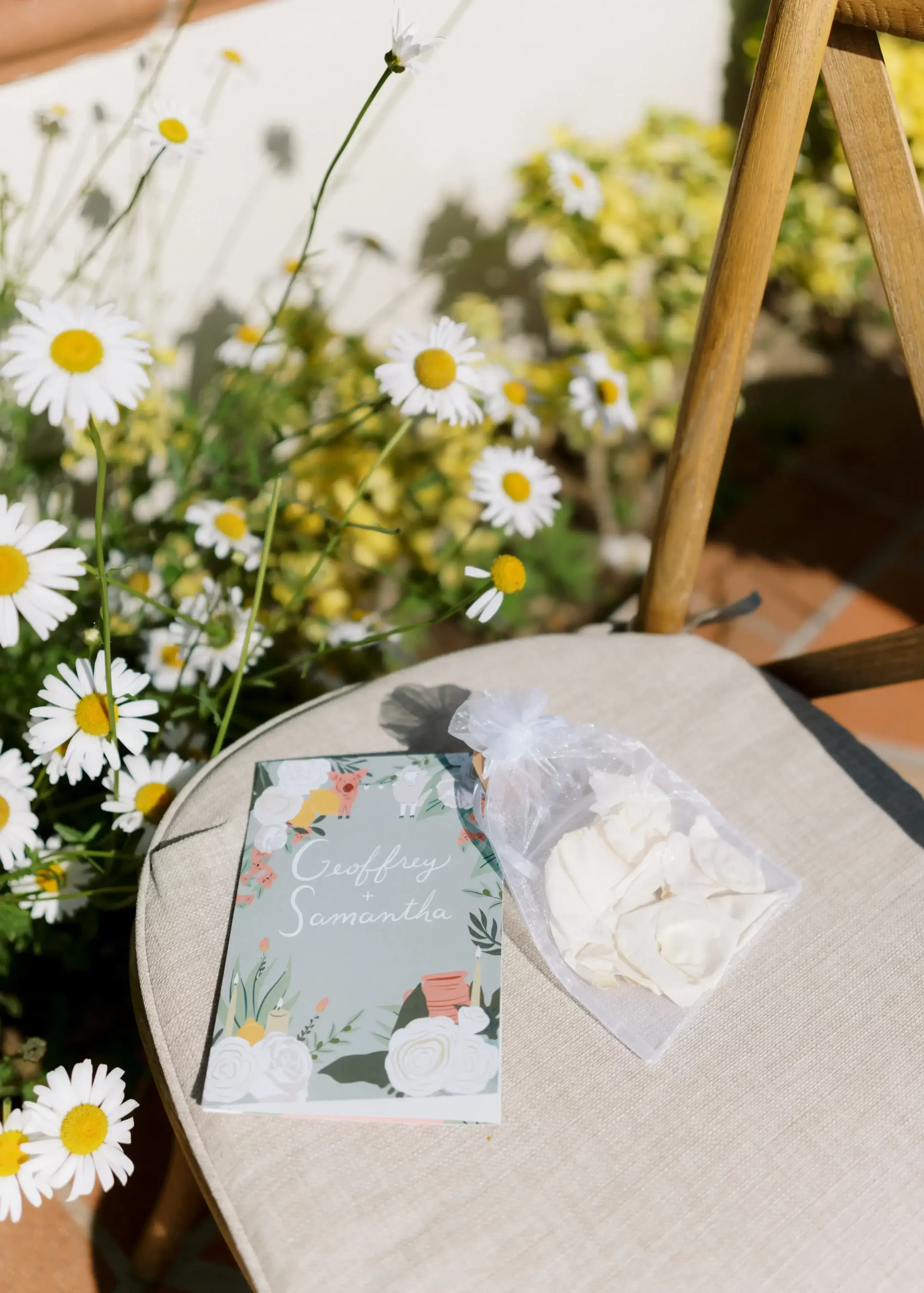 We wanted our wedding theme to seamlessly blend with the venue’s overall vibe. Our first impression was ‘Old Hollywood Glamour’. (It’s no wonder that Damien Chazelle movie Babylon, starring Brad Pitt and Margot Robbie was filmed here) This inspired our choice of satin-finished dresses with clean lines for both the bride and bridesmaids. To lighten things up, we incorporated whimsical Mediterranean elements into our floral arrangements and stationery.