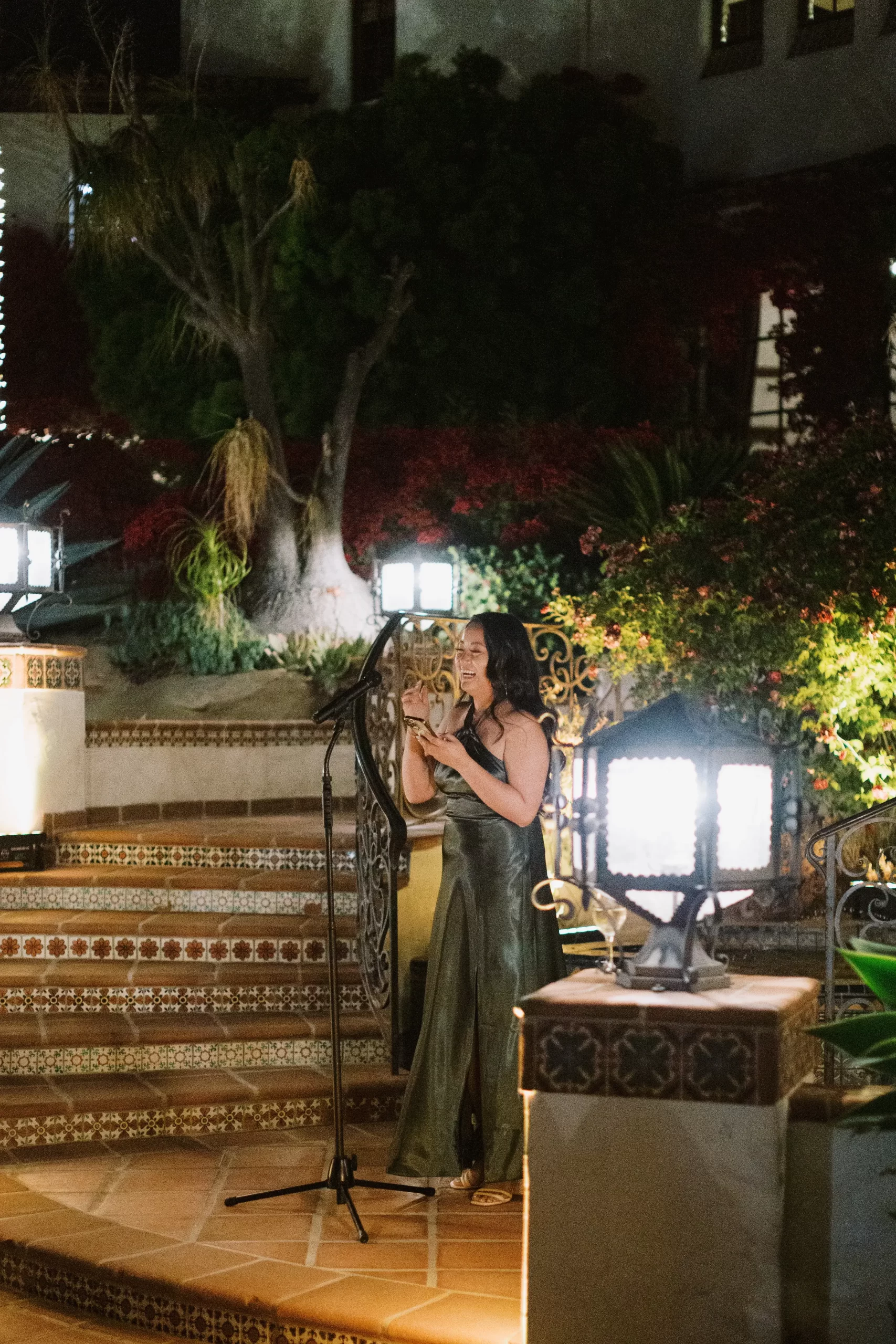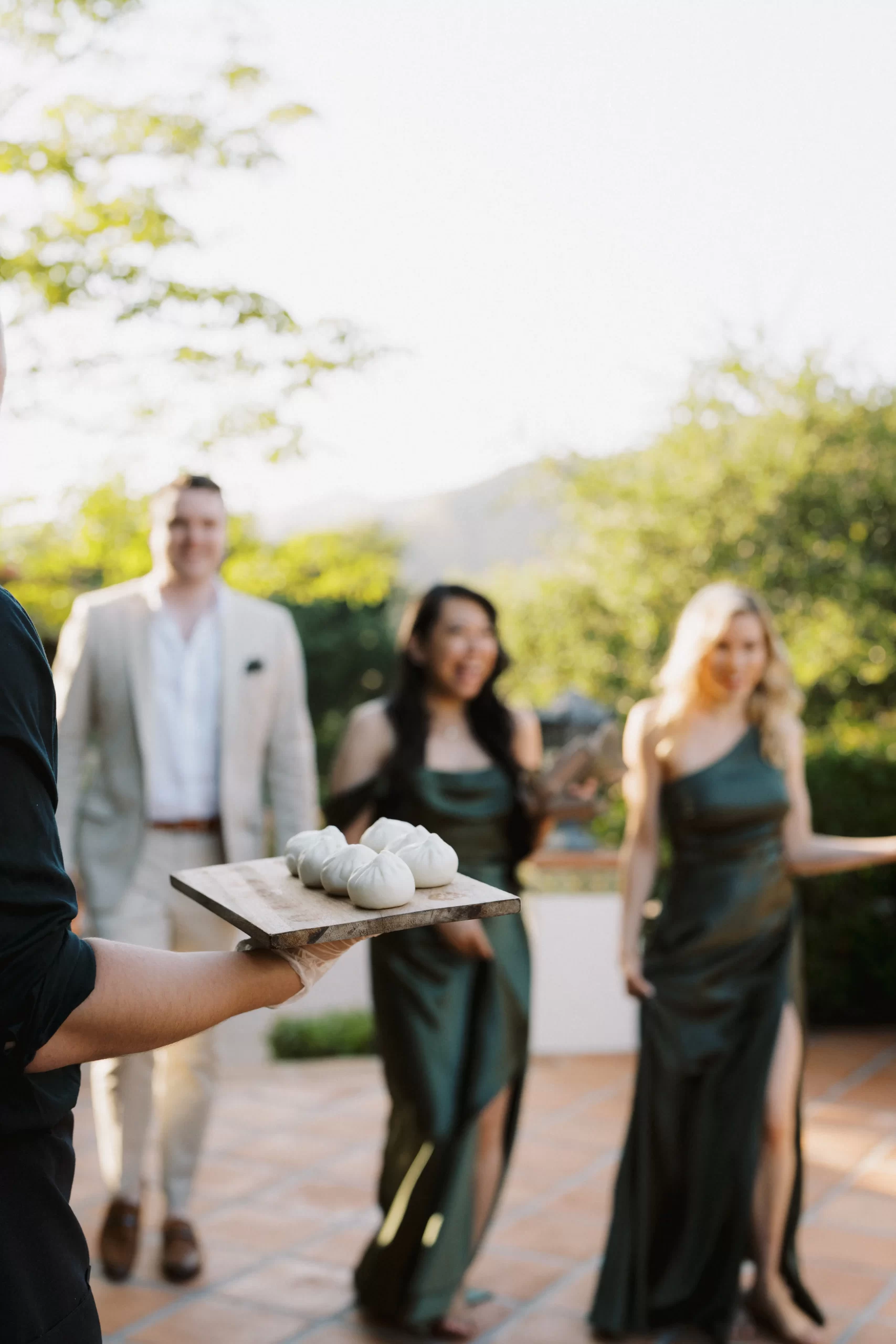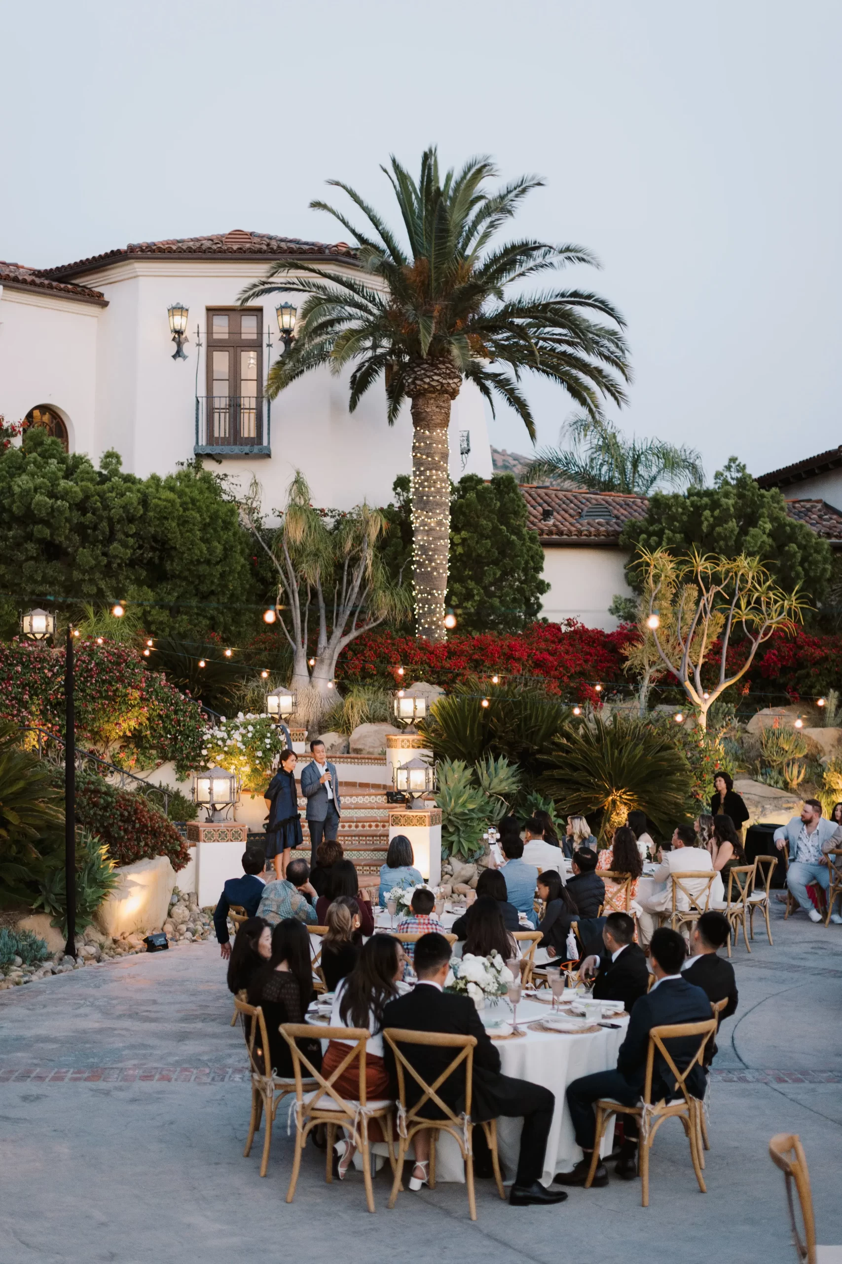 We wanted our guests to feel at ease and natural, rather than stiff and uncomfortable. We set out to discover a venue that not only was beautiful but also functional. We wanted the energy to seamlessly flow between the different areas, from the ceremony to the cocktail hour and reception. We also wanted a reception area that was truly breathtaking, as it would be where guests will be spending most of their time creating ‘our shared memories’ together. Our search ultimately led us to a hidden private property with great Feng Shui and a reception area that opened up to the starlit night sky offering a stunning view of the valley below.