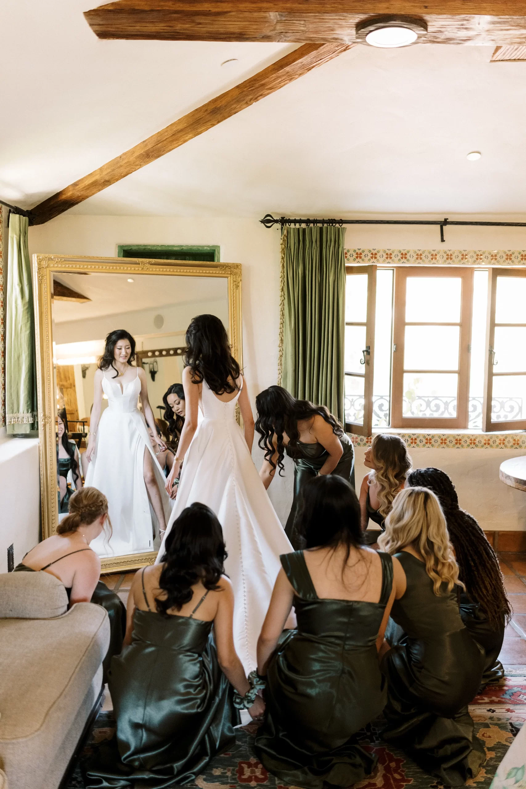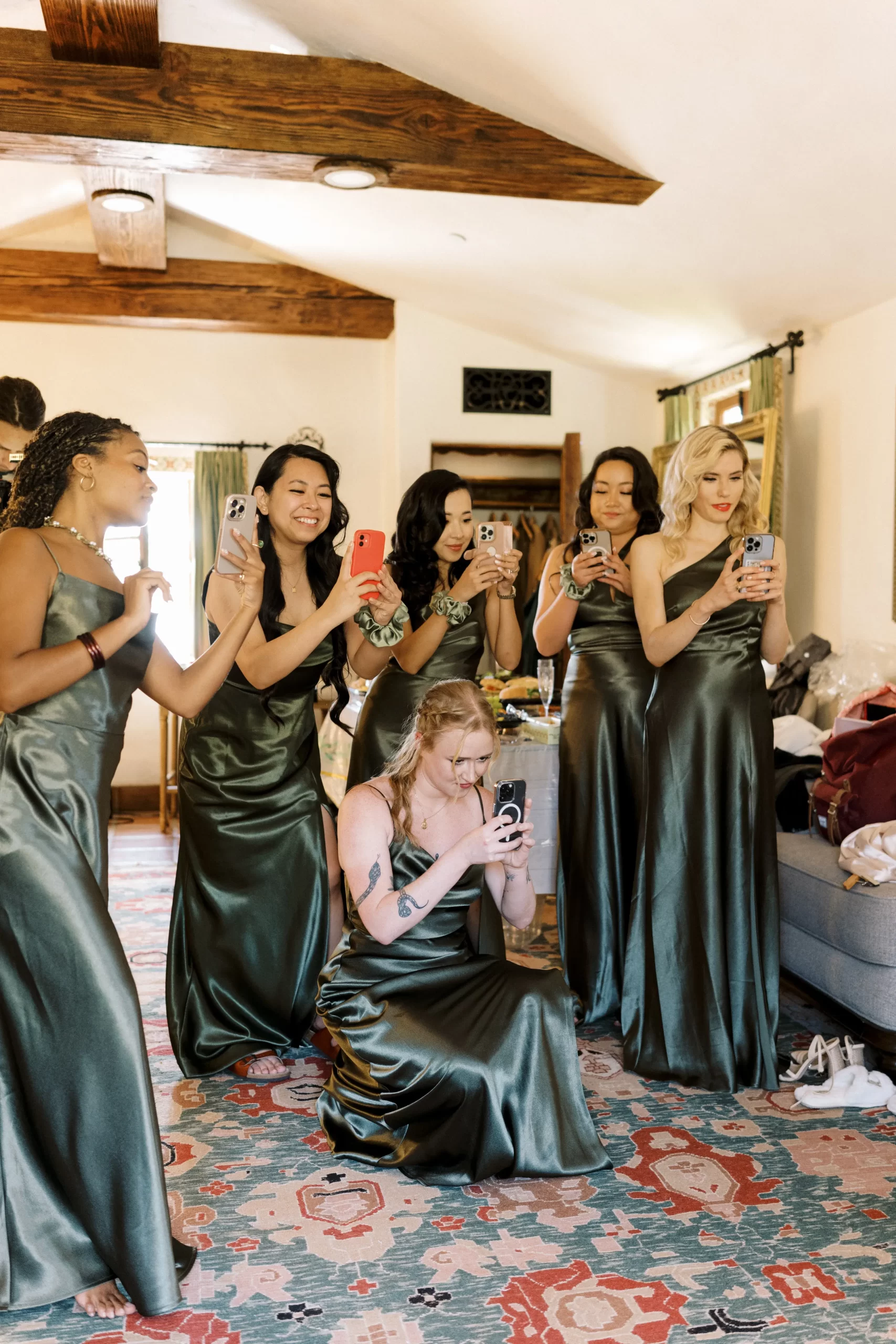 One of my favorite parts of the day was creating lifelong memories with the “I Do Crew” as we got ready. So blessed to have amazing friends who helped set up bridal suite decor and a full blown buffet spread for all of us to chomp on throughout the morning. “Getting ready” felt like an entire event onto itself and I will always cherish its memories. Shoutout to the boys who stood on ledges to get “reel” shots of us.